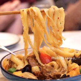 so delicious!! came with a group of friends, we got the signature beef noodle soup, egg with tomato noodle, qinghai clear noodle, and spicy wontons i love that you can pick the type of noodle, their knife cut was amazing! the service here was good and our food came quickly
